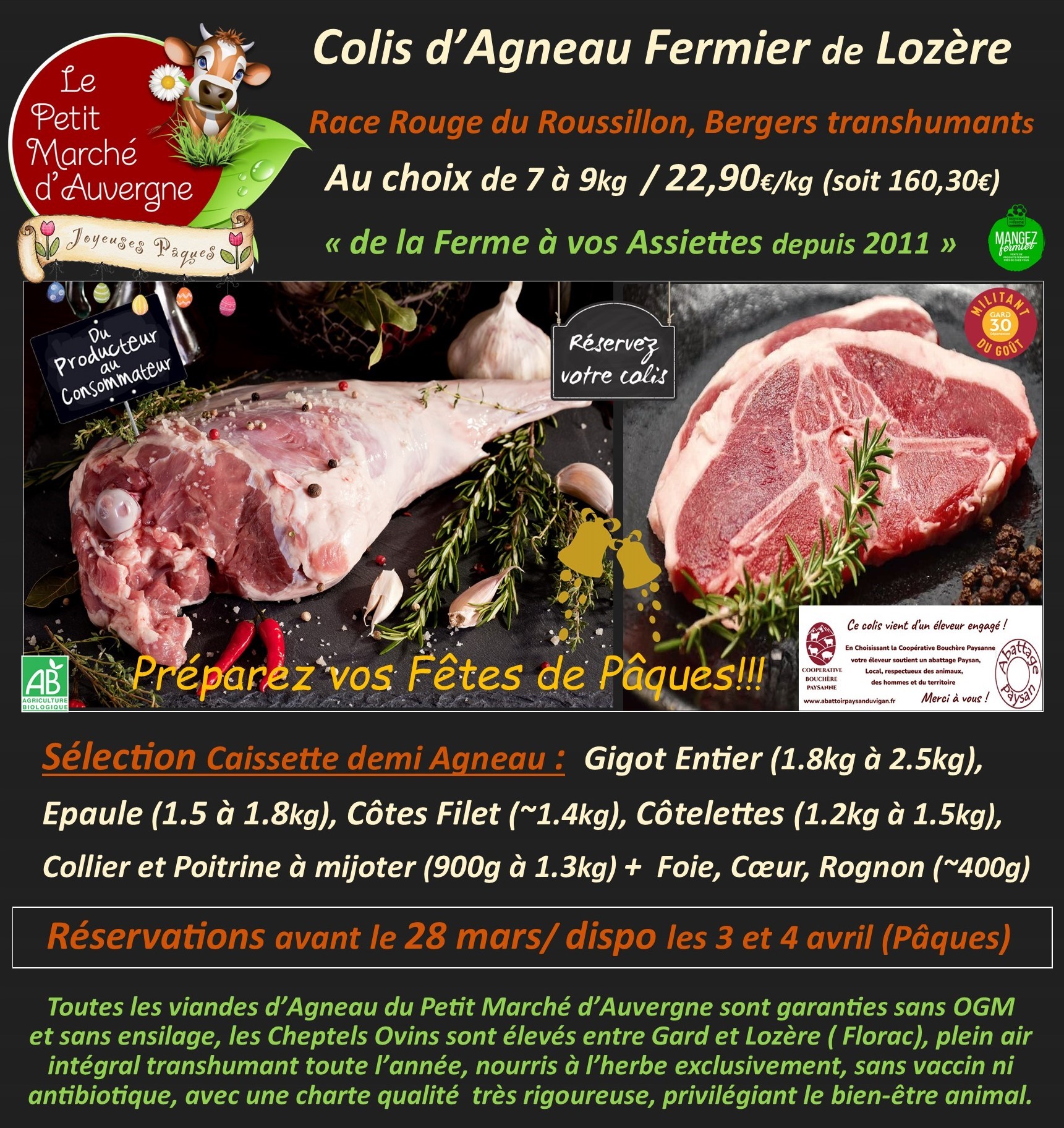 De l’Agneau Fermier Broutard de Lozère dans vos Assiettes pour Pâques…Hummm!!!